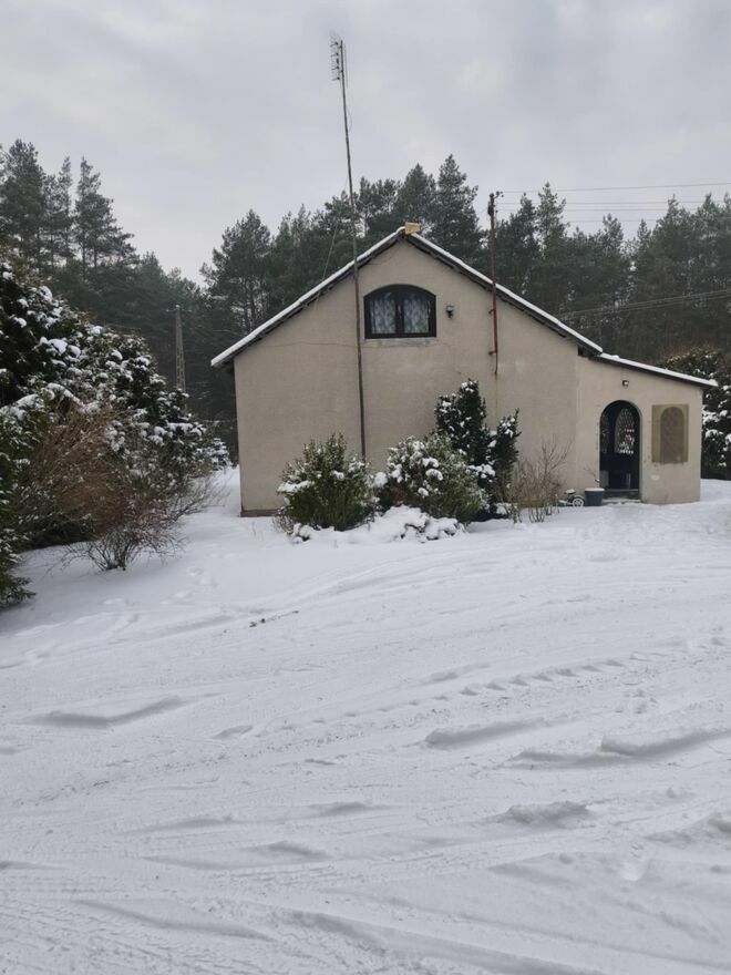 Wynajmę w pełni wyposażony o powierzchni użytkowej ok 80 m całoroczny dom położony 3km od drogi krajowej nr 50(co ułatwi dojazd)w środku lasu otoczony świerkami i pięknym ogrodem dużym podwórkiem grill ognisko-palenisko z ławeczkami huśtawka dla dzieci hamaki stół do pingponga i rakietki do badmintona .